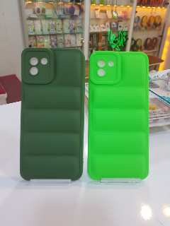 گارد گوشی سامسونگ A03 با تنوع بالا پافر مای کیس و دور طلایی شفاف و دور طلایی و شفاف هولدر دار
